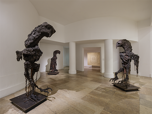 Enfin, Lionel Sabatté (né en 1975 à Toulouse, France – vit et travaille entre Paris et Los Angeles) par une pratique de la peinture, du dessin et de la sculpture, relie le vivant et l’inerte. Récoltant des matériaux (poussière, peaux mortes, cendres, …) de l’ordre de l’invisible, du rebut, l’artiste les combine dans des œuvres subtiles et déconcertantes. Lionel Sabatté, par ses œuvres, crée une faune hybride. Brouillant nos repères, l’artiste s’inscrit à la frontière de notre matière et ce qui devient autre, œuvre.